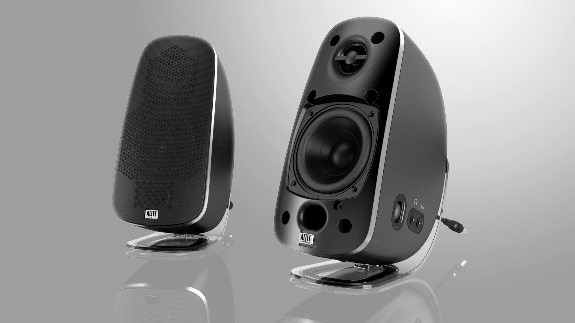 Product renderings for Altec Lansing's new computer speakers,